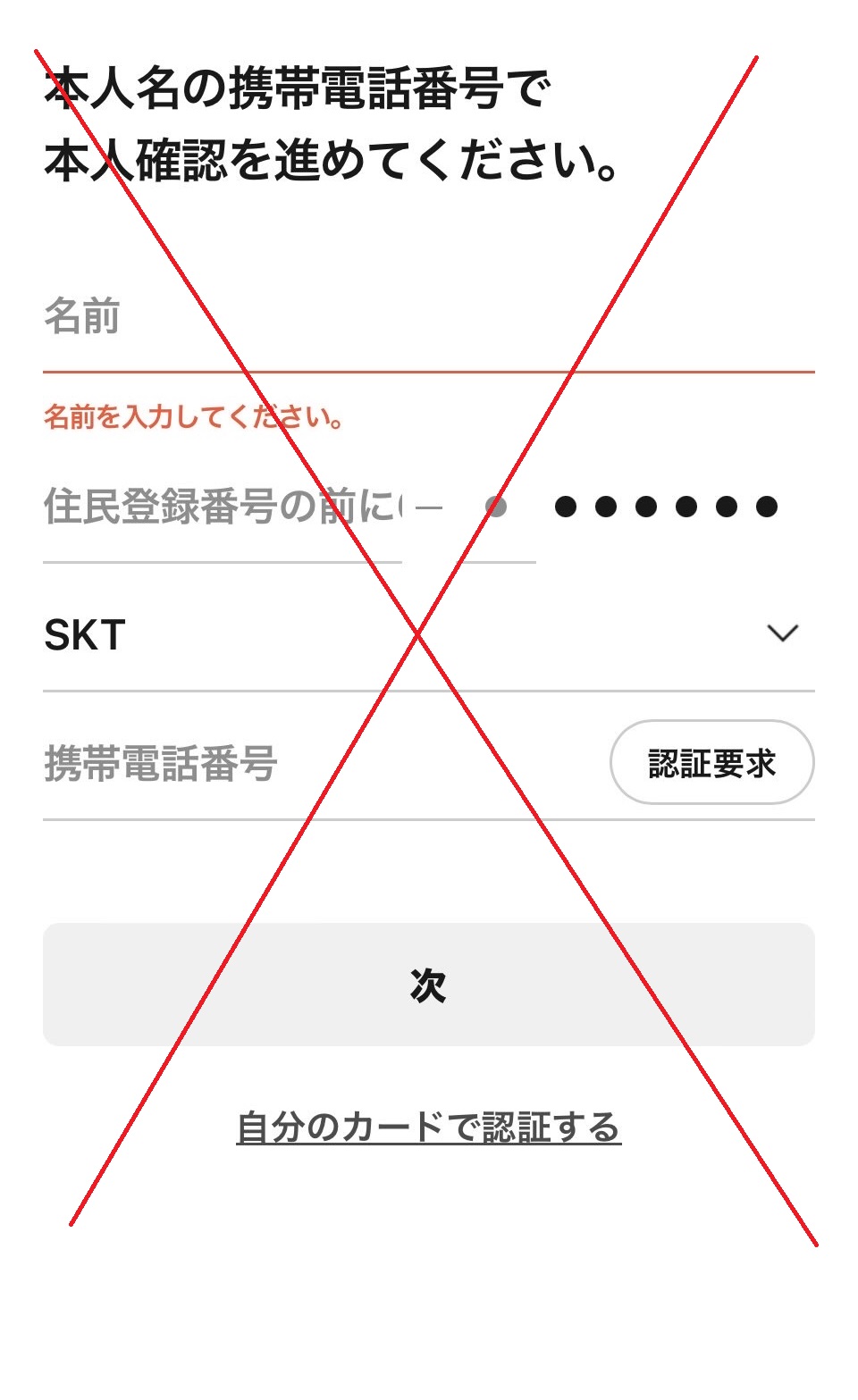 スマホに出てくるモバイルの本名確認は韓国の電話会社しか選べないので使えません。