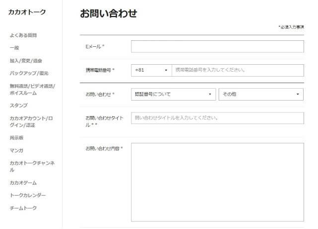 日本から認証を受ける場合はカカオのお客様センターでお問い合わせフォームに必要事項を記入、提出書類を画像かPDFで添付して申請します。